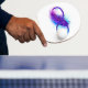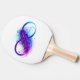 Symbole de l'infini avec une belle plume peinte en couleurs vives violettes et bleues sur fond blanc.