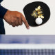 Raquette De Ping Pong Logo Faux Gold Foil Bee Polygonal sur Noir