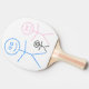 Cute Funny Simple maman papa & bébé en couche personnages en allumettes dessin Ping Pong Paddle, Table Tennis Bat / RacketPapa en bleu, Maman en rose et bébé en noir et dans une petite couche.