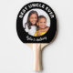 Offrez à votre meilleur oncle un cadeau amusant avec cette pagaie de ping-pong noire personnalisée avec une photo de famille préférée de ses nièces et neveux, leurs noms et "Best Uncle Ever" en typographie blanche.