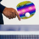 Modern abstract dots/bubbles forme a vibrant kaleidoscope rainbow pattern.