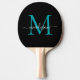 Monogramme Turquoise moderne noir élégant Nom de script Ping Pong Paddle