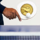 Or round medal with two hands dans la lutte pauvre.