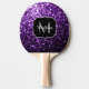 Le violet foncé éclaire la pagaie Monogram Ping Pong Paddle. Personnalisez l'équipement de ping-pong étincelant avec votre initiale et votre nom. De belles parties scintillant violettes brillantes et girly glamour scintillent. Photo de flammes violettes pas de parties scintillant réelle !