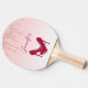 Un design moderne et branché sur une pagaie de ping-pong. L'arrière - plan a une image de gouttes de parties scintillant rose étincelante, le long du sommet. Le reste de l'arrière - plan est un délicat dégradé de couleur rose pastel. Une paire de stilettos roses à talon élevé ajoute une ambiance design et à la mode.