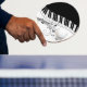 Clavier noir et blanc classique avec un flair incurvé. Des notes musicales rajoutées ajoutent un aspect festif.