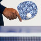 Ping pong paddle est montré dans un imprimé de camo militaire bleu. Customisez cet objet ou achetez tel quel.