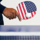 Ping pong paddle montré avec un imprimé patriotique USA Flag. Customisez cet objet ou achetez tel quel.