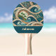 These ping pong paddles will remind you of the beach, surf, and sand, whether you're playing in a coastal cabin among summer breezes or in a basement in snow country. Swirls of Polynesian waves reveal tropical blue and geen jewel tones of the South Pacific and palm trees in a vintage style, remniscent of beach-inspired ethnic art or tattoos. Your name appears in sandy tan on a ocean color teal background, so make sure to type your name in the Personalize section.