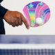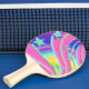 Palette de ping-pong avec une conception de swirlin dans le rose 3D, aqua, bleu, jaune et pourpre et arrosé avec des étoiles d'aqua.