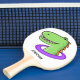 Cette palette de ping-pong a une illustration de sauter principal de T-Rex de bande dessinée mignonne hors d'un anneau pourpre. Vous pouvez la personnaliser en mettant votre nom là-dessus utilisant le modèle. C'est une conception d'amusement appropriée à tous.