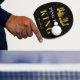 Un élégant pagaie noir et or "Ping Pong King" avec couronne or et nom personnalisé. Un excellent design pour tous ceux qui aiment jouer au ping-pong et qui aiment jouer au ping-pong. Une pagaie de ping-pong de ping-pong de luxe personnalisée.