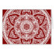 Ce mandala blanc est assis sur un arrière - plan rouge foncé. La couleur est profonde et chaude. Partie de la collection Bardh Mandala.