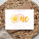 Celebrate a little ray of sunshine turning one with this sweet and minimal first birthday invitation. Featuring a soft watercolor rainbow and sunshine design in warm yellow and blush pink tones, this invitation is perfect for a cheerful, modern birthday celebration.