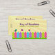 Carte de visite professionnel et mignon comportant les planches colorées de barrière, un oiseau adorable se reposant sur la barrière et deux papillons. L'arrière - plan est le soleil avec des rayons. Un carte de visite idéal pour une crèche, un centre de soins des enfants, travailleur social, services d'enfants, illustrateurs de livre, et convient pour tellement beaucoup plus de services aux entreprises et d'usages personnels. Facile à customiser, remplacez juste le texte fourni par votre information désirée.