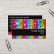 Le carte de visite avec une conception moderne comportant des étoiles dispersées au-dessus d'un "regard de paillette" stylisé arc-en-ciel-a coloré l'arrière - plan rayé. Une conception personnalisable en rouge, orange, jaune, bleu, vert, pourpre, rose et le blanc pour que vous personnalisiez avec votre propres texte, images et idées. Image imprimée créée utilisant des techniques numériques par Jess Perry. Ne contient pas de vraies parties scintillantes ou paillettes