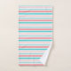Voici une serviette tropicale mignonne de thème réglée qui emploie la sarcelle d'hiver molle et le rose de corail comme couleurs prédominantes. La serviette de bain a un joli motif de rayure dans le corail léger, le corail foncé, la sarcelle d'hiver légère, la sarcelle d'hiver foncée, et le blanc comme frontière inférieure. Elle a une partie supérieure turquoise solide. Au fond de la serviette est une image adorable de deux flamants roses. Avec leurs têtes fermez-vous ensemble, ils forment un coeur. Le tissu de serviette et de lavage de main assortissent la frontière de rayure sur la serviette de bain. Cet ensemble brillamment coloré est beau pour n'importe quelle salle de bains avec un thème tropical.