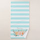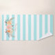 Ajoutez une touche d'élégance féminine à votre décoration avec cet ensemble de serviettes de bain rayées aqua turquoise chic décoré de ranunculus floraux doux pêche et rose. Personnalisez ce magnifique design féminin en ajoutant votre nom.