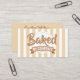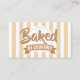 Conception de carte de visite de traiteur moderne avec fond à rayures beige clair, polices manuscrites tendance et mise en page simple. Ces cartes de visite de boulangerie neutres présentent un beige pastel doux ou vous pouvez modifier les couleurs à votre guise - parfait pour les chefs pâtissiers, les boulangers et les traiteurs. Ajoutez le nom de votre marque ou votre logo et faites de cette conception de carte de visite de boulangerie féminine la vôtre.