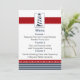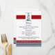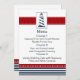 rayures bleu marine et blanc avec bordure rouge et bordure blanche pointillée avec un phare, cartes de menu mariage nautique Mod. Produits correspondants également disponibles.