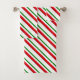 La serviette a placé dans les rayures diagonales de sucre de canne du sucre de canne rouge et vert sur un arrière - plan blanc