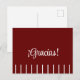 Carte postale espagnole de remerciement ¡Gracias! avec des bandes blanches.