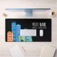 Real Estate business custom office Desk Mat. Modern design with colorful city skyline buildings drawing. Great for rental agency, architect, builders, real estate agents, brokers, sublet agency, expat housing, office sharing, workspace areas, trade, shop and much more.