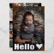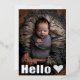 Voici notre élégante carte postale "bonjour" pour bébé. Un modèle moderne qui vous permet de customiser avec 11 de vos photos préférées de votre nouveau bébé. Sur le devant de cette carte il y a de l'espace pour une image complète avec une vraie typographie de feuille d'argent. Au verso, il y a de l'espace pour 10 autres photos. Customisez avec votre propre texte et vos noms pour compléter ce gardien élégant et sophistiqué que votre famille et vos amis chériront pour les années à venir.