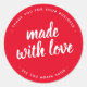 Fabriqué Avec Amour Script Bold Rouge Sticker Rond Étiquette produit