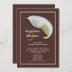 Cette invitation à la réception post mariage présente un lys calla sur un arrière - plan marron chocolat comme point focal. Vos noms apparaissent à gauche de la calla lily. L'invitation peut être customisée avec le lieu et la date de votre mariage et tous les détails importants de votre réception post mariage. Un excellent moyen d'invitation vos invités à une réception après le mariage. Copyright henishouseo