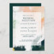 Cette invitation abstraite et colorée à la réception de mariage est parfaite pour votre réception moderne unique en son genre. Peint à la main avec des marques texturées de vert émeraude foncé, de pêche et de moutarde, le tout recouvert d'un carré transparent minimaliste, il est sûr de donner à votre occasion une sensation bohème simple mais rustique.