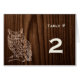 Rich brun foncé look mariage table d'accueil numéro carte de tente. Les images d'une chouette assise sur une branche, décorent le coin inférieur gauche de la carte. Le texte en ivoire crémeux est prêt à être personnalisé pour chaque table à votre réception. Produits correspondants disponibles.