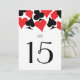 Les jeux de cartes traditionnels rouges et noirs sur fond blanc sont un ajout classique à la suite de mariage Destiny pour la décoration de réception. Indiquez vos tables d'une manière très Las Vegas et facilitez à vos invités la recherche d'un siège. Parfait pour un mariage à Las Vegas dans une petite chapelle hors du Strip, tout ce dont vous avez besoin est l'amour et un ou deux témoins !