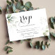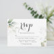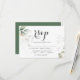 Réception de mariage Feuille d'or vert RSVP. Les fleurs vert émeraude et blanches sont neutres et parfaites pour de beaux mariages verts et or.