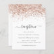 Un rapport qualité-prix BUDGET alternative sur une taille plus petite 4,5 x 5,6" semi-brillant poids 110lbs, qui est d'une épaisseur similaire à une carte postale (cependant ne convient pas à l'utilisation comme carte postale.) VEUILLEZ NOTER qu'il y a UN invitation par feuille. Rose Budget Parties scintillant or Script Mariage Réception Boîtier Une touche de glamour, avec un script élégant avec des swashes pour l'en-tête principal. Personnalisez facilement tout le texte. Une bordure de fausse parties scintillant en or rose est en haut de chaque côté.