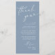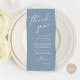 Faites de votre réception de mariage un événement spécial grâce à cet élégant carte de remerciements de mariage, conçu pour être placé dans le cadre du dîner de chaque client. Disposant d’une disposition moderne et minimaliste avec des lettres de script chic, un thème bleu poussiéreux, c’est une façon réfléchie d’express de remercier la famille et les amis pour avoir partagé votre grande journée. Parfait pour les dîners mariages, les dîners de répétition ou les réceptions, cette carte personnalisable peut être personnalisée avec vos noms, date et message spécial. Un détail élégant qui fait office de décor de table mariage, donnant aux clients un souvenir chaleureux de la soirée. Idéal pour des thèmes mariages modernes, rustiques ou classiques.
