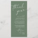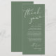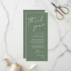 Faites de votre réception de mariage un événement spécial grâce à cet élégant carte de remerciements de mariage, conçu pour être placé dans le cadre du dîner de chaque client. Avec une mise en page minimaliste moderne avec des lettres de script chic, un thème vert sage, c'est une façon réfléchie d'express gratitude à la famille et aux amis pour avoir partagé votre grande journée. Parfait pour les dîners mariages, les dîners de répétition ou les réceptions, cette carte personnalisable peut être personnalisée avec vos noms, date et message spécial. Un détail élégant qui fait office de décor de table mariage, donnant aux clients un souvenir chaleureux de la soirée. Idéal pour des thèmes mariages modernes, rustiques ou classiques.