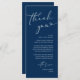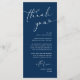 Faites de votre réception de mariage un événement spécial grâce à cet élégant carte de remerciements de mariage, conçu pour être placé dans le cadre du dîner de chaque client. Avec une mise en page minimaliste moderne avec des lettres de script chic, thème bleu marine, c'est une façon réfléchie d'express gratitude à la famille et aux amis pour avoir partagé votre grande journée. Parfait pour les dîners mariages, les dîners de répétition ou les réceptions, cette carte personnalisable peut être personnalisée avec vos noms, date et message spécial. Un détail élégant qui fait office de décor de table mariage, donnant aux clients un souvenir chaleureux de la soirée. Idéal pour des thèmes mariages modernes, rustiques ou classiques.