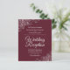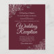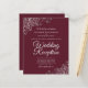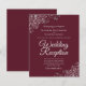 Ces invitations de réception de mariage abordables et économiques sont le choix parfait pour allier classe, style et beauté sans se ruiner. Conçues pour les invités qui sont conviés à la réception mais pas à la cérémonie, elles présentent un fond bordeaux, marron ou rouge vin avec des fronces en faux papier métallisé argenté orné dans les coins. La typographie comprend des lettres en écriture cursive gris pâle fantaisie pour un style à la fois simple et élégant. Une merveilleuse façon d'inviter vos amis et votre famille à partager votre joie en ce jour spécial sans vous ruiner.