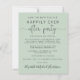 Annonce de save the date à la sauge verte abordable pour une réception ou une fête pour célébrer votre fuite ou mariage intime. Le devant présente "Savez la date pour notre fête de bonheur éternel" dans un mélange de typographie simple et d'une écriture élégante avec fioritures, votre annonce de mariage personnalisée, les détails de save the date de la fête ou de la réception et vos noms dans une écriture de type signature. Le dos présente votre photo de mariage préférée, vos prénoms et les dates du mariage et de la réception.