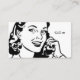 Femme rétro tenant un téléphone à son oreille "Call Me" à droite/ Le dos est noir avec un texte personnalisable blanc