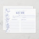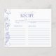 Conçu pour s'adapter à notre invitation à la douche nuptiale en bleu et blanc victorien, ce design de carte de recettes branché présente une jolie typographie manuscrite, des fleurs victoriennes bleues à la main classiques de fleurs de jardin, d'abeilles et de papillons, ainsi qu'une calligraphie moderne à la main. Toutes les lignes de recettes nécessaires pour partager les recettes préférées avec la future mariée ! Tous les champs de texte, sauf la typographie de conception propriétaire, peuvent être modifiés, selon les besoins. VEUILLEZ NOTER : CETTE CARTE DE RECETTES NE SERA PAS ADAPTÉE À L'ENVELOPPE D'INVITATION CARRÉ, VOUS DEVREZ DONC COMMANDER LA CONCEPTION VERTICALE 5X7" DE L'INVITATION CORRESPONDANTE POUR ALLER AVEC CETTE CARTE DE RECETTES Voir la suite ici : https://www.zazzle.com/collections/french_blue_white_victorian_floral_bridal_shower-119265327422133417 Contacter le concepteur pour les produits correspondants. Copyright Surridge Design Co. pour Invitations élégants, tous droits réservés.