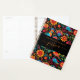 Planificateur moderne de recettes à 3 anneaux avec un nom de script femelle orange sur un arrière - plan à motif floral mexicain. Personnalisez avec votre nom sur la couverture.
