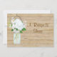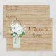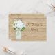 Cette carte de 5" x 7" est conçue pour que les invités partagent leurs recettes préférées avec les mariés. Vous pouvez l'envoyer avec l'invitation et leur demander de la remplir et de la retourner à la douche de mariée. Une excellente idée est d'organiser une tombola parmi ceux qui ont partagé une recette pour encourager la participation. Cet ensemble d'invitations de mariage de style Rustique Country Farm Floral a été créé à partir d'une œuvre d'art à l'aquarelle peinte à la main par Audrey Jeanne Roberts. Le pot a été délicatement peint à l'aquarelle dans un bleu vert aqua doux et rempli d'un bouquet d'hydrangeas bleues et de pavots blancs dans un doux bleu pastel qui ont été cueillis dans les propres jardins d'Audrey Jeanne et peints à la main. Les pots de confiture de style vintage sont un style de design très tendance pour les mariages boho chic. L'arrière-plan est une clôture en planches de pin grises patinées par les intempéries, vieillies et délabrées pour transmettre l'ambiance de mariage extérieur de style