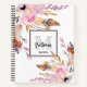 Un arrière - plan blanc chic aux fleurs roses, roses, sprigs et plumes brunes et dorées. Boho d'été, style bohème. Un cadre gris et blanc avec espace pour votre nom et lettre monogramme. Le nom est écrit en noir avec un script de style moderne écrit à la main. Lettre monographie en gris. Parfait pour vos plats préférés, recettes de cuisine.