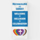 Vous pouvez afficher l'accueil de votre congrégation aux personnes LGBT dans le culte avec cette banderole orangée "Réconcilier dans le coeur du Christ".