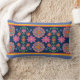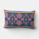 Rectangle Bordure Motif Floral Rangoli, Coussin Lumbar bleu