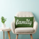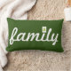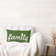 Coussin de typographie "famille" verte et blanche avec un accent d'arbre sur "i".