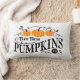 Cet adorable coussin de ferme est orné d'un panneau citrouille qui indique "Citrouilles frais de ferme" dans une police décorative. Ce coussin ajoutera une touche cosy à votre décor de récolte d'automne. L'arrière du coussin est muni d'un motif de contrôle de ferme noir et blanc.