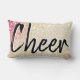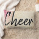 Le coussin mou et filin présente un faux arrière - plan d'or et de parties scintillant rose avec les mots "Cheer" griffés dans une police grungy noire